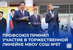 Заместитель председателя Иркутской областной организации Профсоюза Владислав Евгеньевич Сметанин разделил торжественное событие с учениками и коллективом педагогов школы г. Иркутска №57.