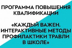 С 24 по 26 марта 2020 г. Иркутская областная организация Общероссийского Профсоюза образования с целью содействия повышению квалификации педагогических работников, членов Профсоюза, организует проведение Федеральным научно-методическим центром в области психологии и педагогики толерантности программы повышения квалификации "Каждый важен. Интерактивные методы профилактики травли в школе". Место проведения семинара: г. Иркутск, пер. Богданова, д.6 СОШ № 11, проезд транспортом до остановки «Сквер Кирова» (гостиница «АНГАРА»)