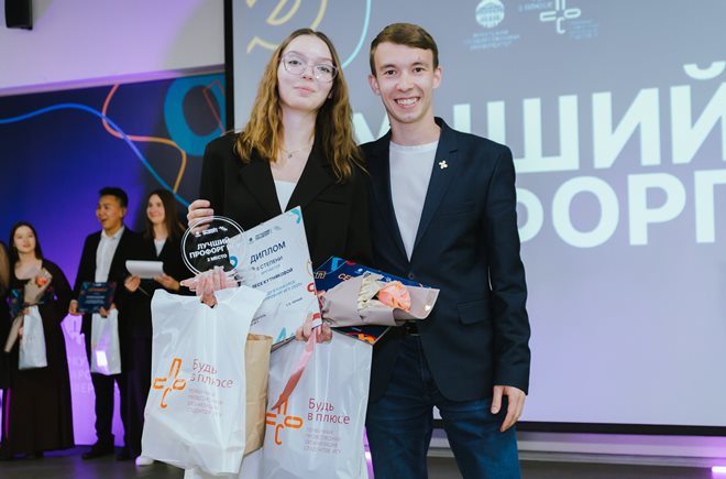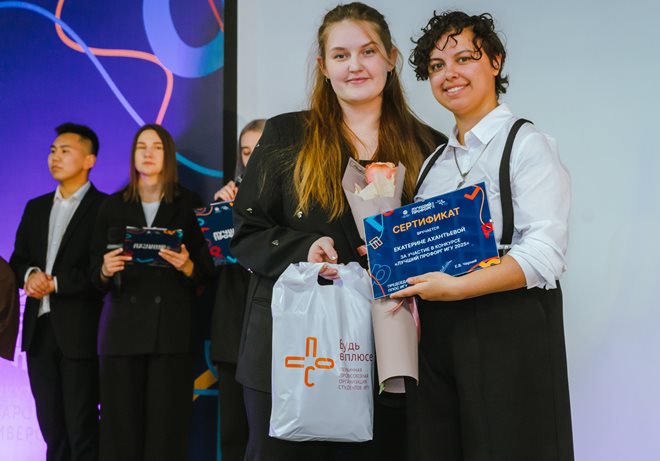 По итогам всех конкурсных испытаний победителем и обладателем звания «Лучший профорг ИГУ — 2025» стала студентка факультета иностранных языков ИФИЯМ – Екатерина Ахантьева.