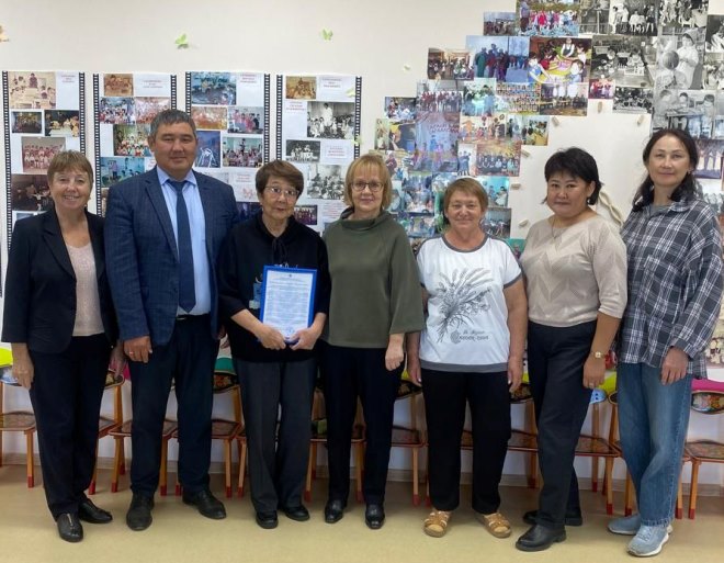 С плановым визитом было совмещено приятное событие – поздравление с 65-летним юбилеем детского сада №7 «Колосок» на встрече с заведующей сада Любовью Перфильевной Мухидаевой.